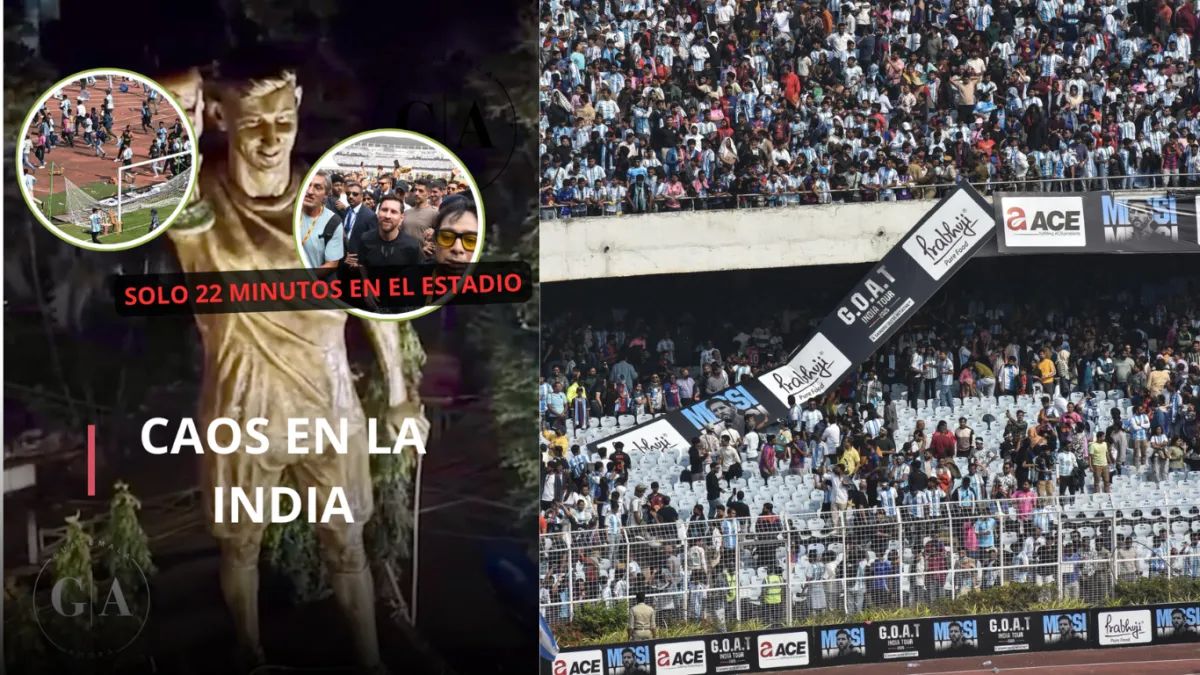 Lionel Messi llegó a India para la primera parada de su llamado “Goat Tour”, acompañado por Rodrigo De Paul y Luis Suárez. El punto central de la visita era la inauguración de una estatua de más de 20 metros de altura en el estadio nacional, concebida como homenaje al campeón del mundo. Sin embargo, la presencia del jugador en el recinto deportivo se redujo a pocos minutos debido a problemas de orden en las gradas y en el área cercana al campo, según reportes de la organización.