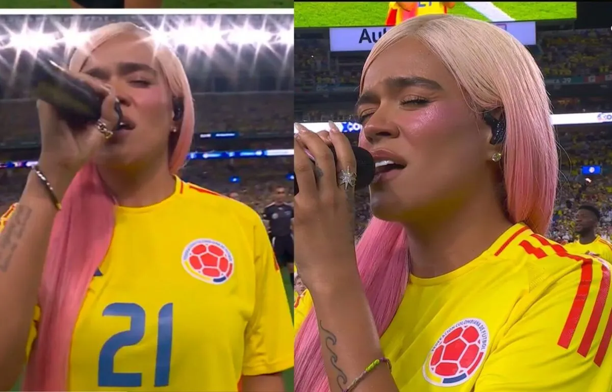 En el esperado inicio de la final de la Copa América, las selecciones de Argentina y Colombia saltaron al campo de juego para entonar el himno de sus respectivos países. Sin embargo, los colombianos se llevaron una grata sorpresa cuando Karol G, la reconocida cantante, interpretó el himno nacional de Colombia. Con una camiseta de la selección cafetera, Karol G se paró en medio del campo y emocionó a todos los presentes con su interpretación.