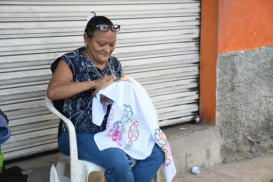 Dina Janet Hernández es una abuelita de 56 años, vive en Santo Tomás de Castilla. Hace 4 años inicio a realizar bordados para mantas o manteles para todo tipo de ocasión.