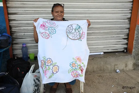 Dina Janet Hernández es una abuelita de 56 años, vive en Santo Tomás de Castilla. Hace 4 años inicio a realizar bordados para mantas o manteles para todo tipo de ocasión.