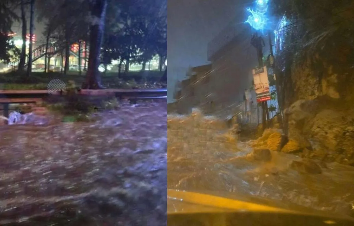 Además del derrumbe, se reporta una significativa acumulación de agua en el bulevar principal de San Cristóbal. Esta inundación ha sido especialmente notable cerca de la Parroquia San Antonio María Claret, donde las imágenes muestran calles anegadas, dificultando el paso tanto de vehículos como de peatones.