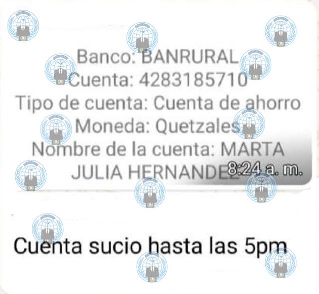 Uno de los aspectos más preocupantes de esta red es el uso de cuentas bancarias para lavar el dinero obtenido. Flor de María Bonilla, con la ayuda de contactos dentro de una entidad bancaria, presuntamente Banrural, obtiene diariamente alrededor de 40 cuentas nuevas. Estas cuentas son distribuidas entre los encargados de los sectores, quienes a su vez las reparten entre los reclusos para que depositen el dinero extorsionado.