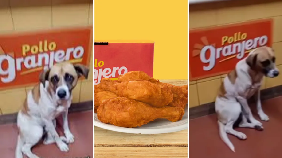 Chapín conmueve al comprarle una pieza de pollo a perrito frente a Pollo Granjero