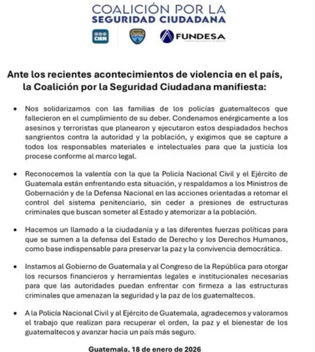 Guatemala cerró el domingo 18 de enero de 2026 con una escalada de violencia dirigida contra agentes de la Policía Nacional Civil (PNC), reportada como una serie de ataques en distintos puntos del país. En reportes citados por medios, el saldo confirmado fue de siete agentes fallecidos y al menos 10 heridos, mientras se activaban operativos para ubicar a los responsables y evitar nuevos hechos.