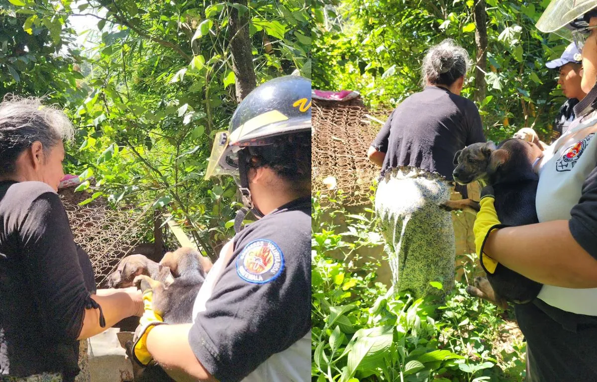 Final feliz: mujer y cachorros ilesos