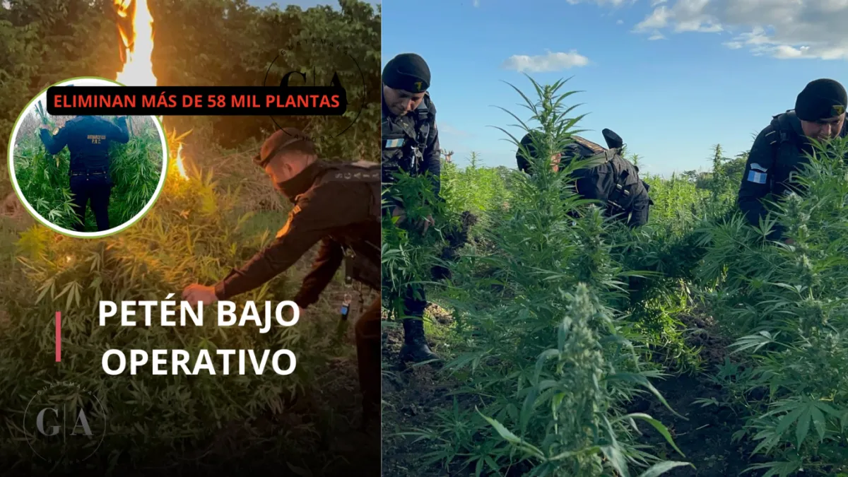 Las fuerzas de seguridad reportaron dos acciones antinarcóticas en Petén con impacto económico relevante para estructuras criminales. En el municipio de Las Cruces, autoridades informaron la destrucción de 58 mil 928 matas en fase de aprovechamiento, con un avalúo aproximado de 22 millones 98 mil quetzales.