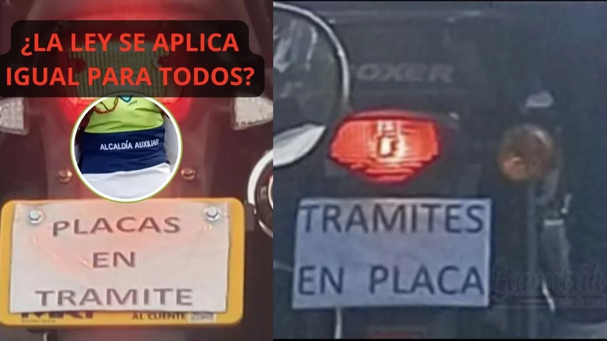Una fotografía difundida en redes sociales mostró una motocicleta sin placas visibles y un papel colocado como rótulo con la frase “placas en trámite”. En la imagen también se aprecia indumentaria con la leyenda “Alcaldía Auxiliar”, lo que empujó el tema más allá de una infracción común: si la regla se aplica con el mismo rigor a cualquier conductor.