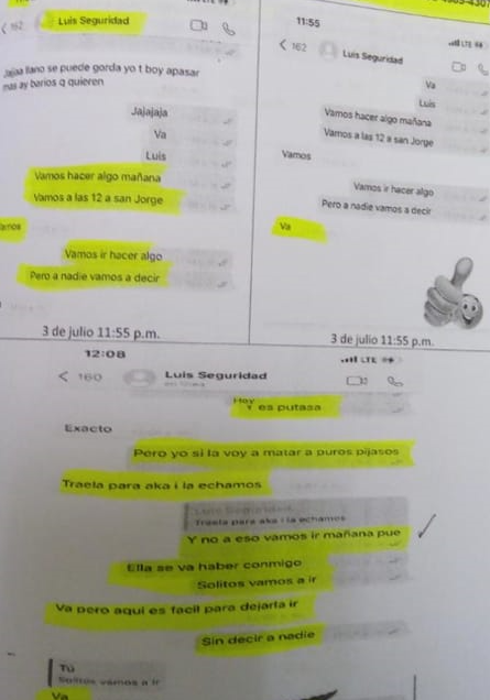 Durante el proceso judicial, se presentaron como evidencia conversaciones extraídas de WhatsApp entre Bonilla y Marroquín. Estas conversaciones, fechadas la noche del 3 de julio y la madrugada del 4 de julio de 2021, sugieren una premeditación en el acto que culminó con la muerte de Palacios.