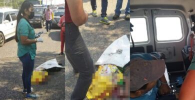 Tras el fuerte impacto voló por los aires cayendo en la cinta asfáltica en el Kilómetro 39 Ruta Al Atlántico CA-9, en jurisdicion de San Antonio La Paz El Progreso informan los Bomberos Municipal Departamentales de la estación 127.