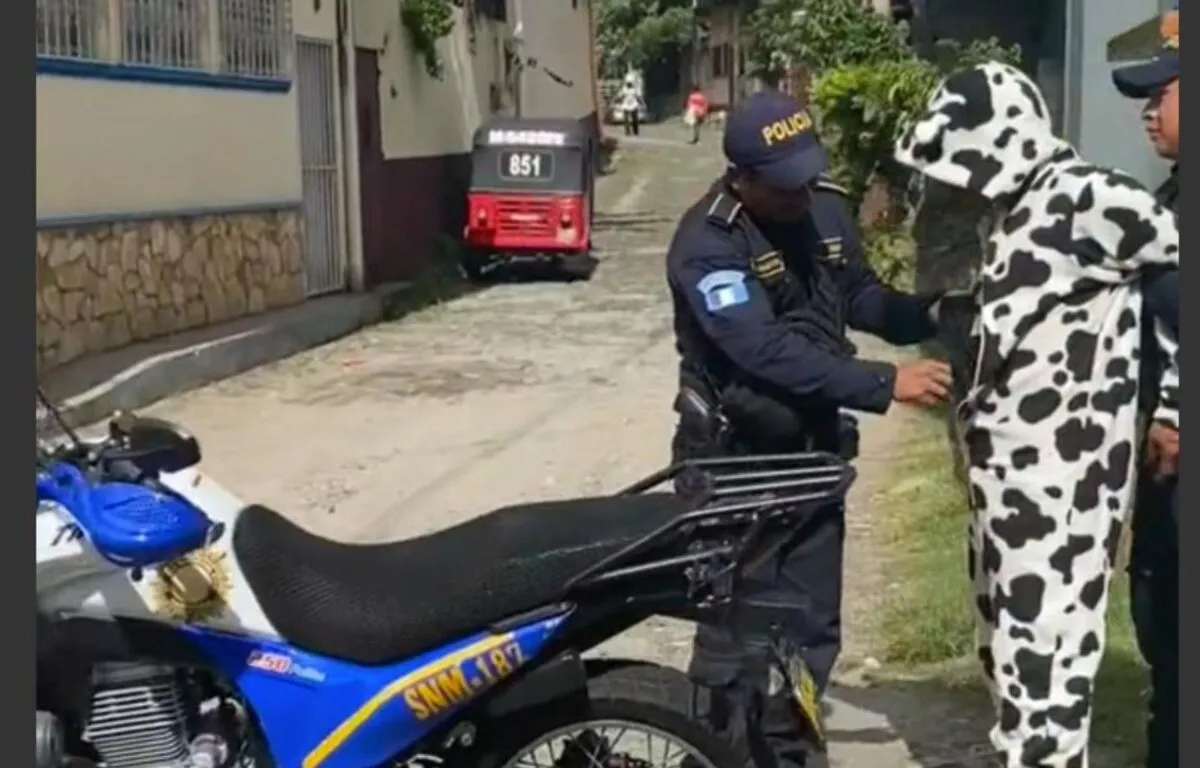 El arresto se llevó a cabo en las calles de Malacatán, donde el hombre, utilizando un disfraz de vaca, fue interceptado por agentes de la Policía Nacional Civil (PNC). La escena, captada por vecinos que transitaban en un vehículo, mostró cómo los oficiales revisaban al sujeto, encontrando un cuchillo escondido en su peculiar atuendo.
