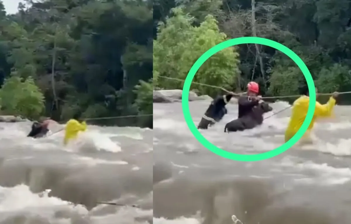 El video del rescate muestra a la ternera siendo arrastrada por las agresivas aguas del río. La desesperación del animal era evidente, ya que sus fuerzas se debilitaban ante la implacable corriente. Sin la intervención de los bomberos, la situación podría haber terminado en tragedia.