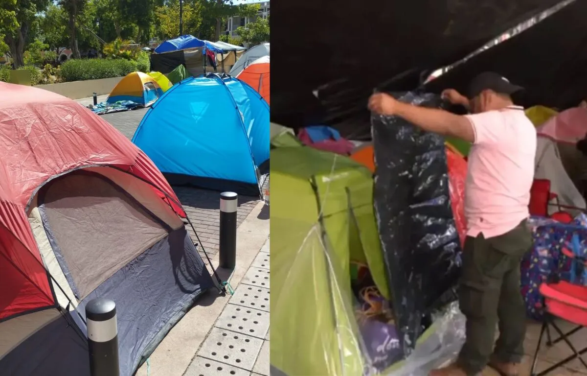 A través de videos difundidos en redes sociales, se ha podido observar cómo los maestros se han organizado para resistir las condiciones climáticas adversas. Durante las lluvias del lunes por la tarde, muchos se resguardaron bajo carpas improvisadas, mientras que otros utilizaron postes y palos para colgar su ropa mojada.