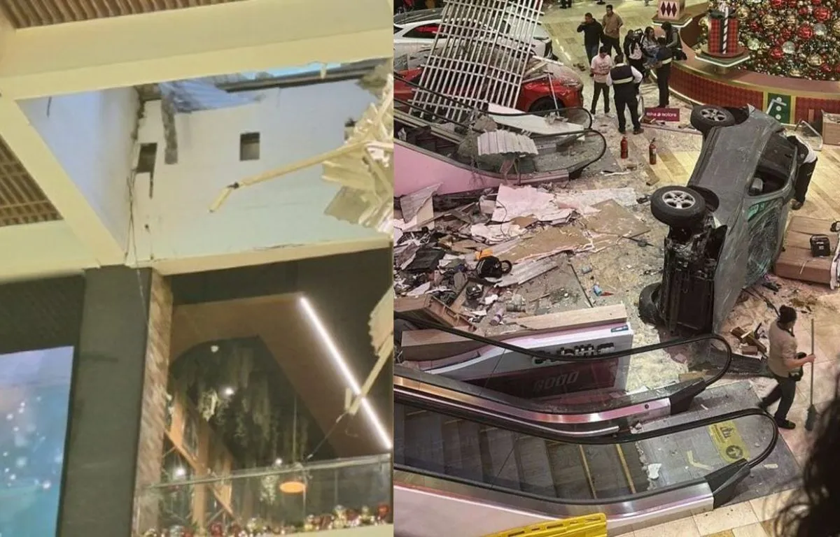El suceso quedó registrado en las cámaras de seguridad del centro comercial, ofreciendo un vistazo aterrador del momento. En el video se observa cómo el automóvil atraviesa la barrera de seguridad del estacionamiento antes de precipitarse al vacío. La caída, que duró apenas unos segundos, provocó un fuerte estruendo al impactar contra el suelo, dejando a los presentes en estado de shock.